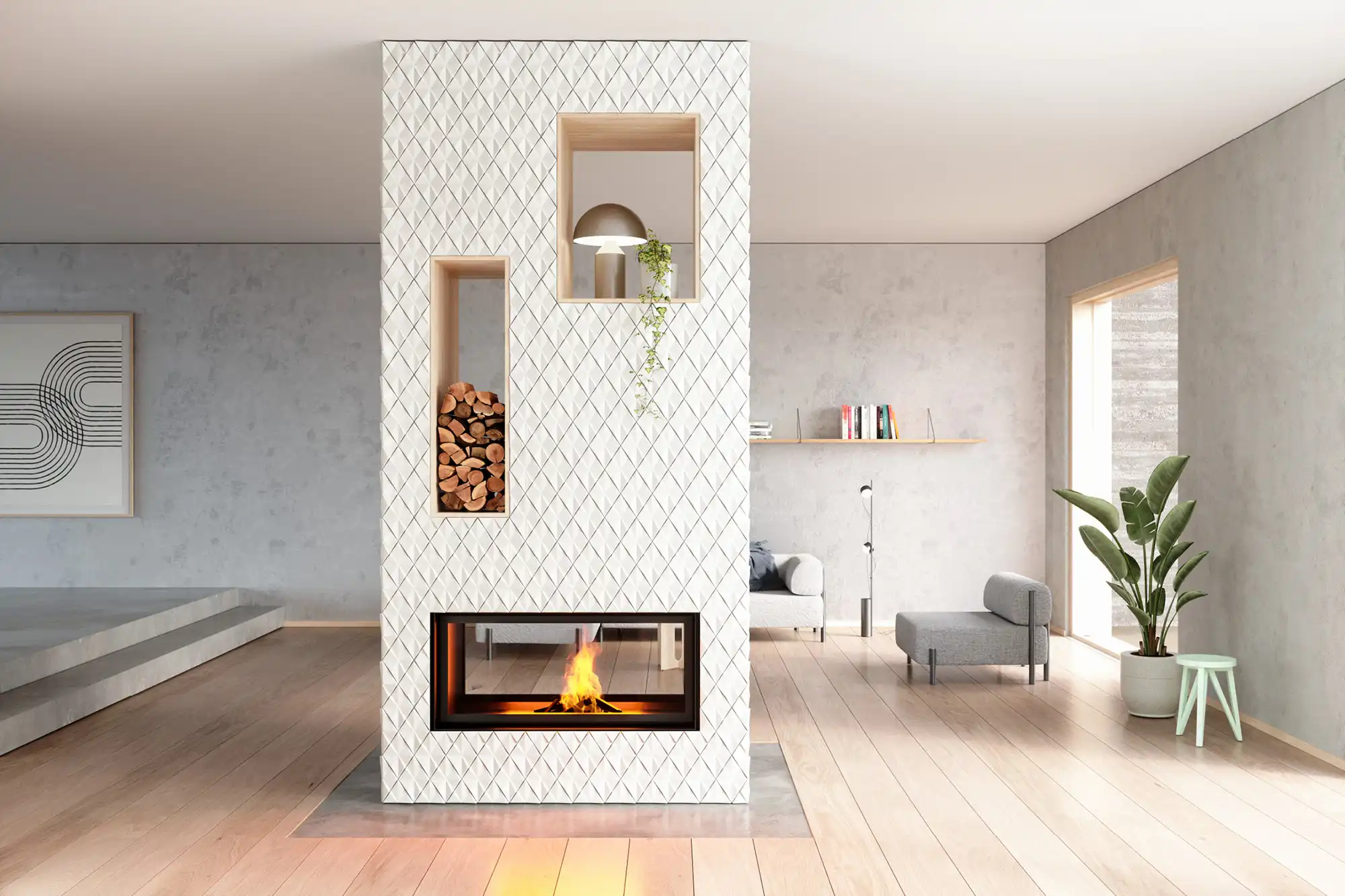 Strahlungswärme, niedrige Betriebskosten und langlebige Qualität. Oberfläche nach Wunsch: Kachel, Putz oder Naturstein – perfekt abgestimmt auf Architektur und Möblierung.